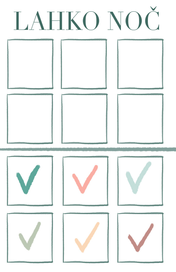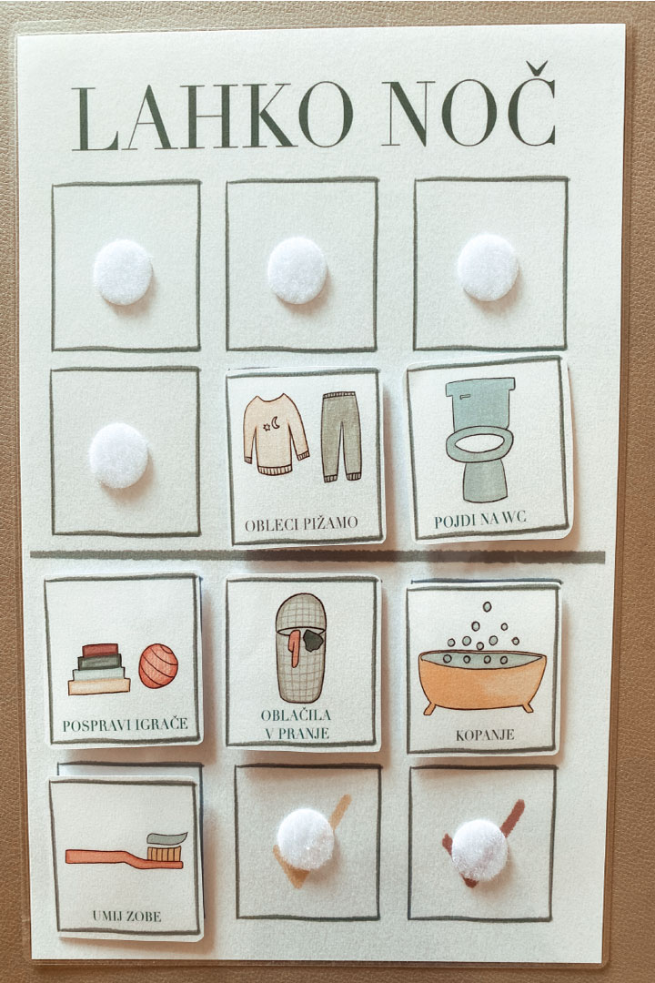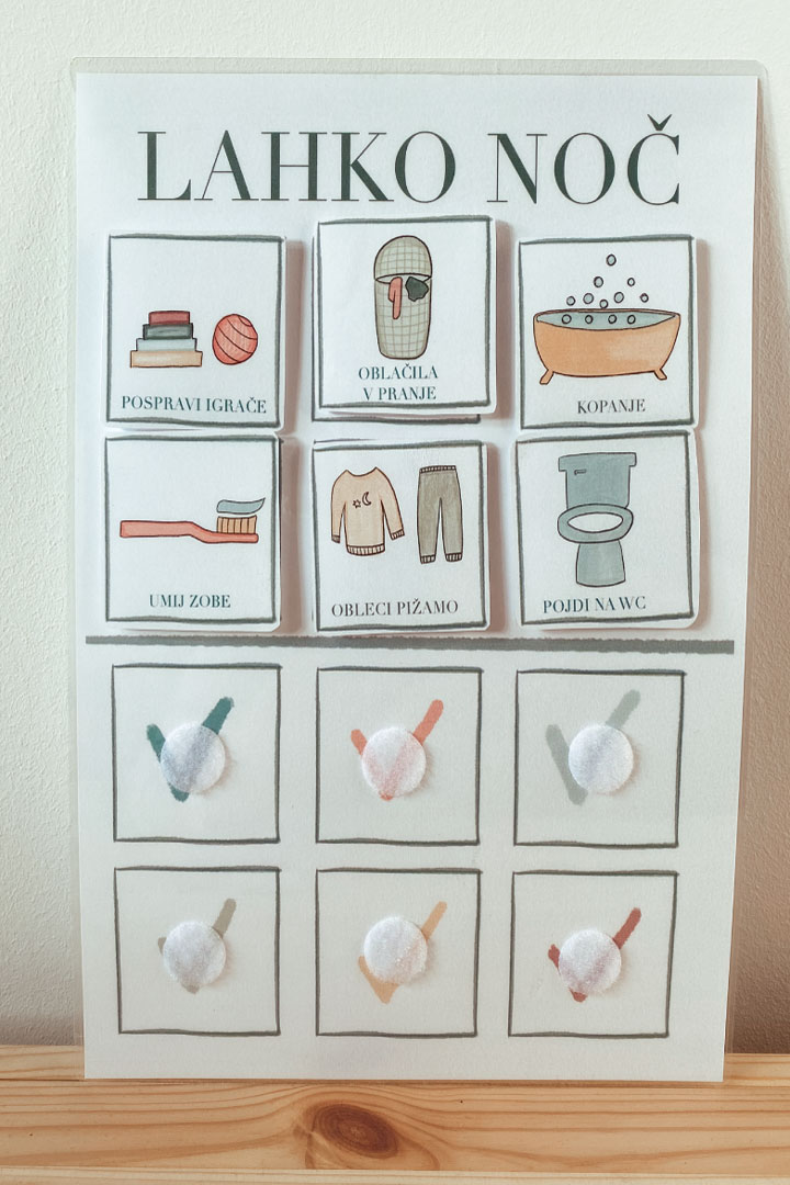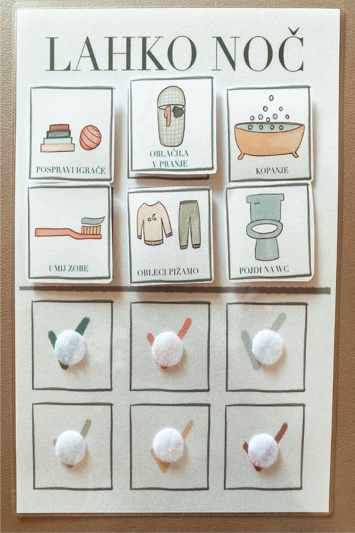 PREDLOGA ZA VEČERNO RUTINO služi kot pripomoček pri vzpostavljanju ali ohranjanju uspešne večerne rutine.